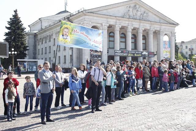 Мета цього флешмобу - засвідчити прагнення дітей Чернігова до миру.