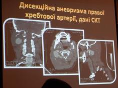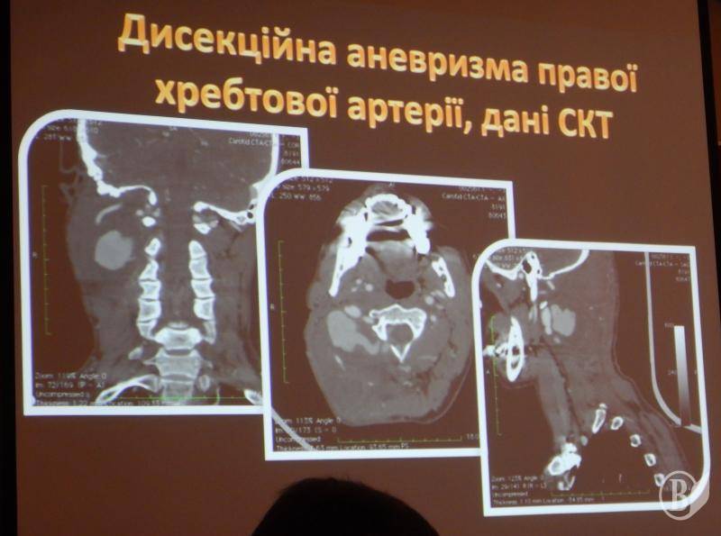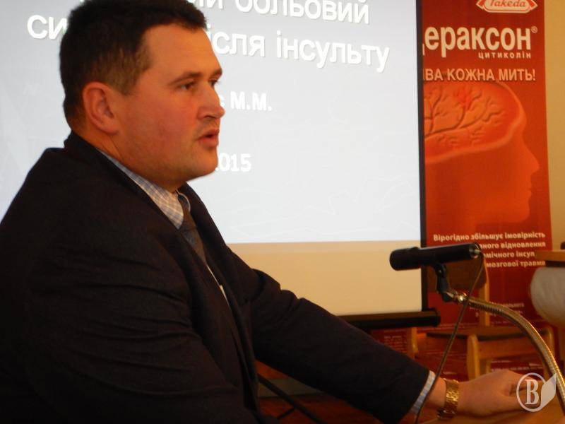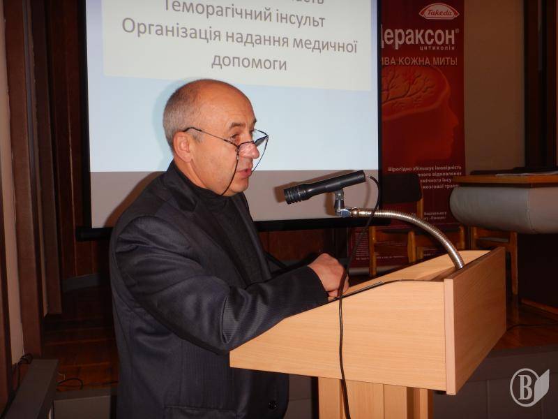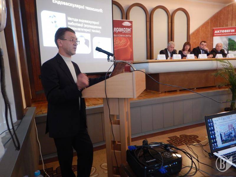 Базовою була доповідь кандидата медичних наук, завідувача відділення невідкладної судинної нейрохірургії з рентген операційною Інституту нейрохірургії ім. академіка А.П.Ромоданова – Володимира Мороза.