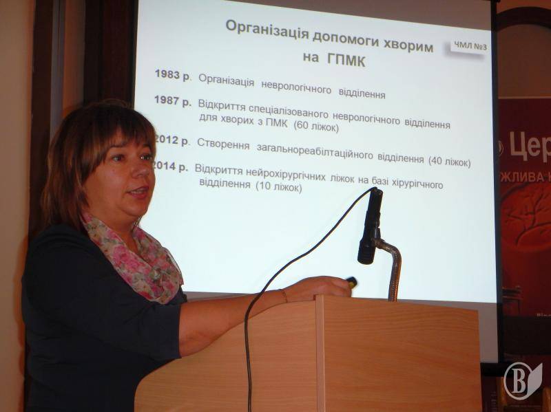 Заступник головного лікаря з медичних питань Чернігівської міської лікарні № 3 Наталія Бабкіна доповіла про організацію та надання медичної допомоги хворим на мозковий інсульт в цій лікарні та роботу відділення реабілітації.