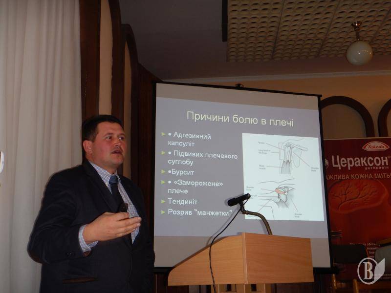 В рамках школи реабілітації перед лікарями виступив доктор медичних наук, доцент кафедри, лікар-невролог з Ужгородського національного університету Михайло Орос. Він розповів про виникнення післяінсультного болю та його лікування. Це також є на відео прямої трансляції.