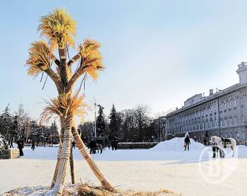 Новорічна магія все-таки існує. Щойно чернігівці встановили в центрі міста різдвяний майданчик, як уперше за всю зиму випав глибокий сніг. На центральній Красній площі неподалік головної ялинки засяяв золотавими барвами дідух, або, як його називають на Поліссі, зажин.