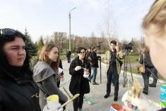 До акції зареєструвалося аж десь 300 чоловік. Організатори вже не знали, як їх усіх скерувати. Але прийшли не всі – це ж студенти.
