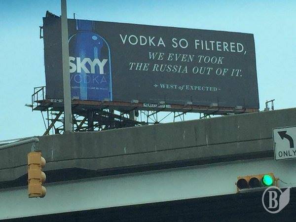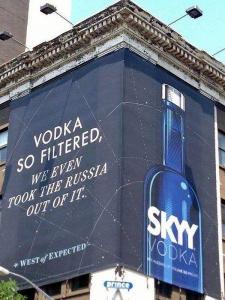 Тож горілку SKYY, як запевняють на рекламному біг-борді, відфільтровують аж так добре, щоб у ній не було Росії.