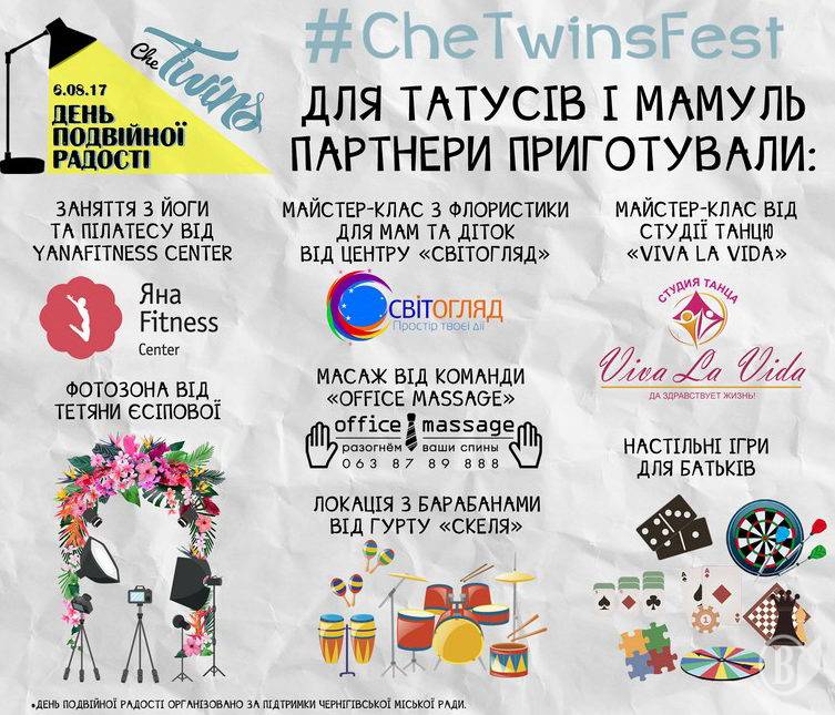 Вперше у Чернігові у неділю, 6 серпня, відбудеться сімейний фестиваль «День подвійної радості», приурочений Дню двійні.