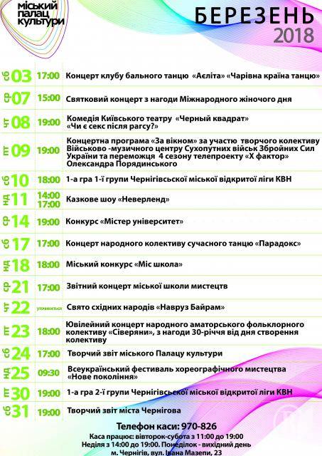 Репертуар Міського Палацу культури на березень 2018
