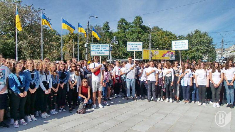 Під час церемонії ректор вишу Сергій Шкарлет вручив футболку з логотипом університету міському голові Владиславу Атрошенку. Той, в свою чергу, побажав студентам бути україноцентричними, створювати родини, народжувати не менше трьох дітей, сплачувати податки до місцевого бюджету і думати серцем замість шлунку.