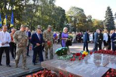 Відповідні урочистості розпочались зранку з данини пам’яті всім, хто загинув у боротьбі за Чернігів, за Україну. І не тільки у роки Другої світової, а й у війні новітній – на Сході України.