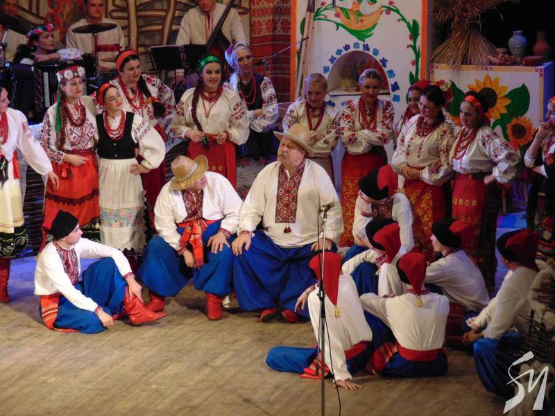 А згодом у залі центру відбувся концерт, в якому артисти змогли відтворити атмосферу традиційних народних гулянь: як то воно - “на вечорницях гуляти, Андрія справляти, на дівочу долю ворожити, щоб у дівках не сидіти”. Прозвучали українські жартівливі пісні, глядачі змогли побачити запальні народні танці у постановці Віктора Войникова. За словами режисера-постановника дійства — художнього керівника та головного диригента Академічного народного хору, заслуженого діяча мистецтв України Володимира Коцура, у дійстві використаний народний сюжет. «Ми обіграли народні сценки – як дівчата обирали судженого, як носили воду в роті і виливали її в тісто для калети… Основний атрибут цього дійства – пісні, танці, магічний хоровод».