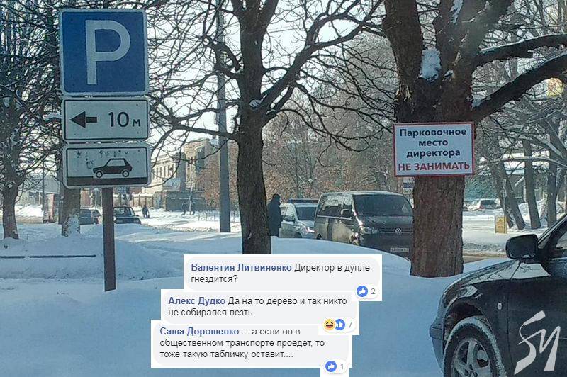 Там хтось «застовпив» місце для паркування директора на дереві.