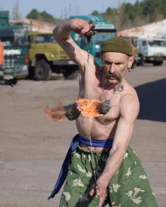 Сьогодні, наприклад, перед побратимами з фаєр-шоу виступив "Шаман" – один з вояків механізованого батальйону.