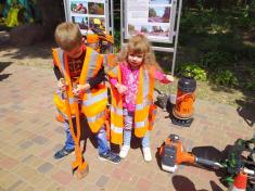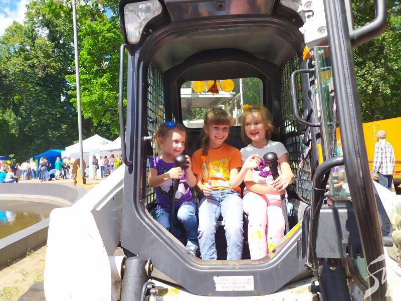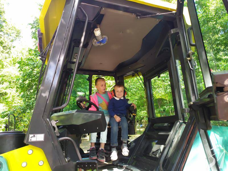 Тут були і дорожній каток, навантажувач, фреза, повітрядувка, маркувальна машина для нанесення розмітки, кущоріз, керновідбірник, курвиметр, пірометр, дорожні знаки та конуси. Дітлахи, що прийшли знайомитись з професією дорожника, були в захваті.