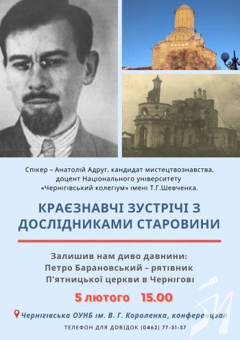 Чернігівська ОУНБ ім. В. Г. Короленка (просп. Миру, 41) запрошує на «Краєзнавчі зустрічі з дослідниками старовини».