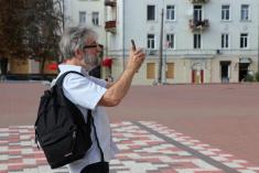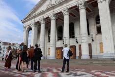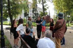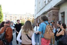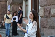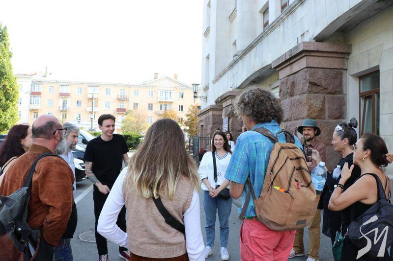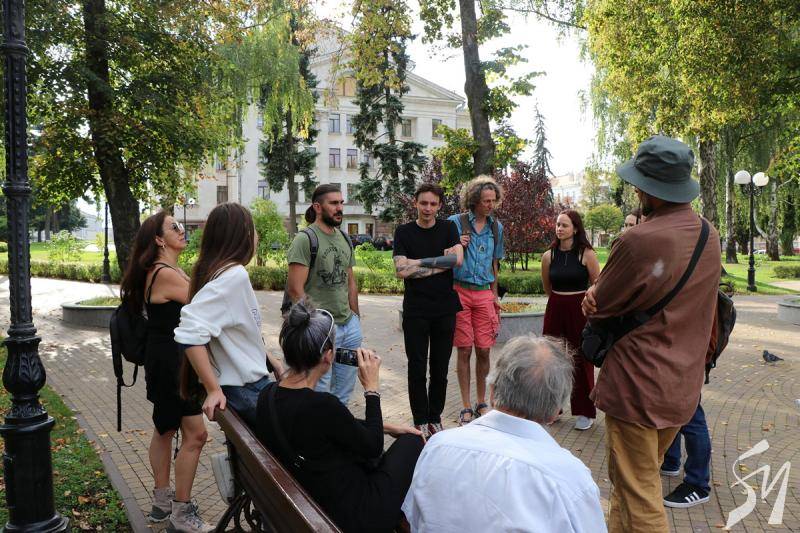 П’ятеро перформерів відвідали оглядову екскурсію містом від історика та дослідника Володимира Пилипенка.