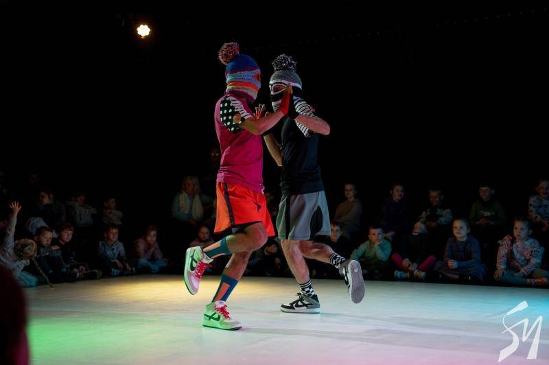Актори за всю виставу не промовили жодного слова. Але вони вдягалися, як вдягаються діти, заздрили, сварилися, мирилися, гралися. Все, як роблять діти. Тому малеча раз по раз вибухала емоціями і сміхом. Адже це була вистава про них. Про їхній дитячий світ.