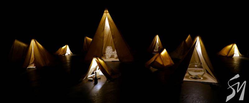 Це знов-таки було потрясінням. Не очікував такого від театру. Мене розривало від цікавості: що написано на листочках біля кожного намету? Які метафори та життєві мудрості розгадували юні глядачі?