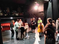 Саме в цьому театрі дітям і їх батькам розповіли, як народжуються театральні вистави. Юним вручили іграшкову сцену, і вони розповідали з неї про те, де вони перебувають в театрі. Школярі відвідали цех реквізиту і костюмів. Побували на балконі, з якого освітлюють сцену і де працює звукорежисер. Спустилися в гримерну, де наносили грим на малюнки персонажів. І врешті-решт вийшли на сцену, де розповіли про побачене і погралися.