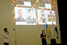 Присутні вшанували хвилиною мовчання пам’ять загиблих воїнів. Право покласти квіти до стели загиблих воїнів мали президент обласної ради учнівського самоврядування закладів профтехосвіти, учениця Чернігівського професійного ліцею залізничного транспорту Аліна Колосовська та учень Чернігівського вищого професійного училища Влад Юда.