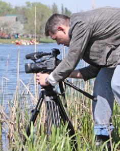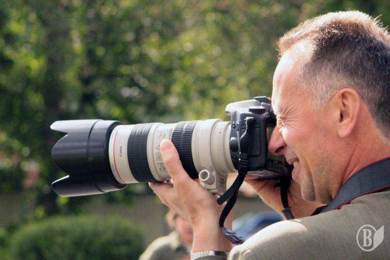 Чернігівських журналістів намагався помістити в кадр Віктор Кошмал. Втім, сам він туди теж встиг потрапити.