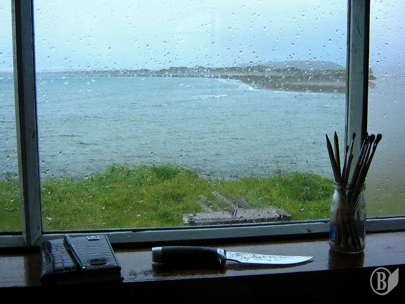 Будиночок для мандрівника був просто чудовим: велика кімната з двома широкими ліжками-нарами, стіл, кілька стільців, саморобна металева грубка, телевізор, барометр-самописець, бінокль, диковинні мушелі, магнітофон з касетами Висоцького, Візбора, Городницького, на стінах висіли картини і фотографії Сергія, на книжковій полиці стояли книги Хемінгуея, Стівенсона, Марка Твена, Гріна, а також справжні раритети – „The international code of signals” (Лондон, 1926 року видання) і „Port of New York. Marine, transportation, industries” (Нью-Йорк, 1929 р.). Двоскатна стеля була обклеєна великими морськими картами. Широкий ганок під навісом виходив на берег океану, і вже у якихось 10 метрах від дверей шумів прибій.
