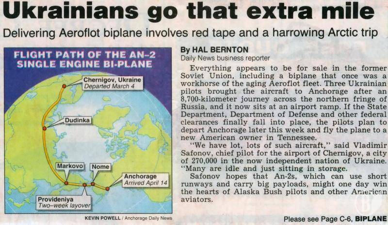 Представлено документальний спогад про неймовірний та унікальний переліт навесні 1992 р. на літаку АН-2, який здійснили льотчики Чернігівського об’єднаного авіазагону на чолі з автором видання.