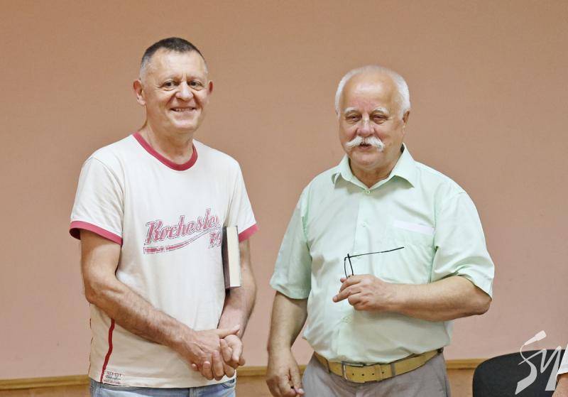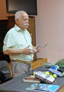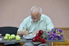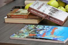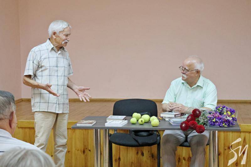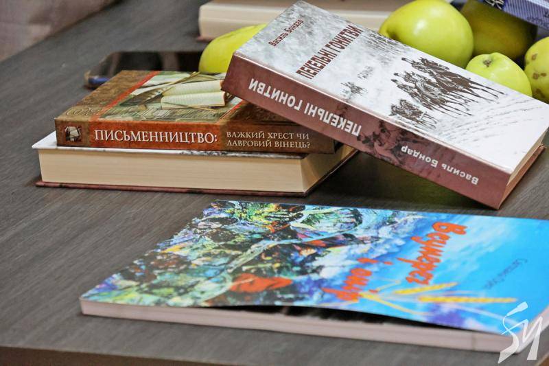 Василь Бондар подарував кілька своїх книг учасникам зустрічі і одну, яка розповідає про творчі майстерні письменників - музею Михайла Коцюбинського.