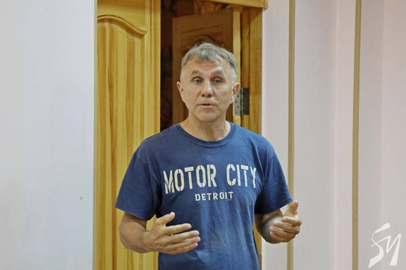 …Уже на вході побачив ще одного випускника факультету, який теж вписаний у Вікіпедію серйозним творчим доробком. Сергій Козак давав інтерв’ю Челайну, як літературознавець, про творчість Василя Бондаря.