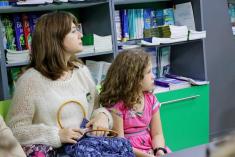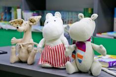 А потім, майже годину, діти заворожено слухали пригоди кумедних героїв. Мумі-Тролі , які були присутні на столі, теж слухали і спостерігали за реакцією дітей. А Олена Росстальна змінювала інтонації при читанні та надавала твору таємничості.
