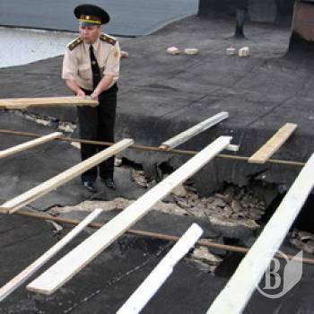 Дыру закрыли пленкой и брезентом. Изготовили проектно-сметную документацию на ремонт кровли. Облгосадминистрация выделила 467 тыс. грн.