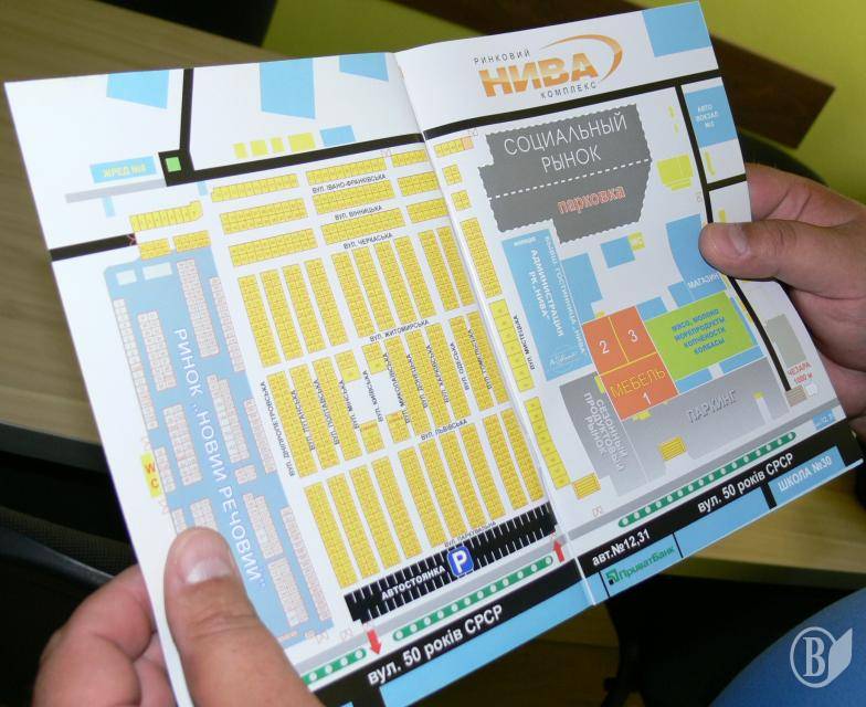 Мы – наверное единственный рынок Украины, который выпускает свой буклет. В этом буклете есть схема рынка. Расписано, чем торгует каждое торговое место. Мы это делаем в основном для гостей из Беларуси. При въезде каждому дается такой буклетик.
