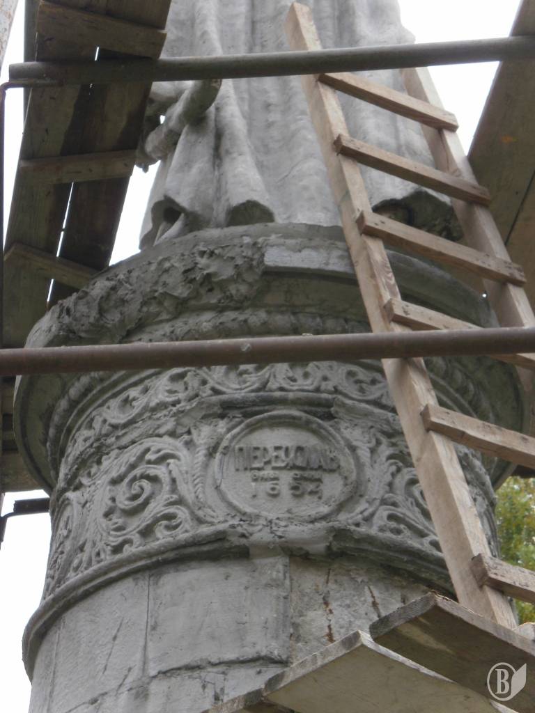 Пам'ятник скверу імені Б. Хмельницького — бетонна статуя заввишки 2,5 м на циліндричному цегляному постаменті (заввишки 3,2 м), що спирається на чотирикутний цоколь, облицьований каменем і плиткою.