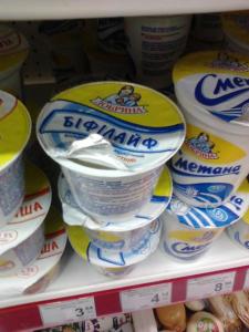Ще вчора ми обійшли вказані магазини, де з великими зусиллями відшукали "Біфілайф" в упаковці герметичній. Заради цікавості навідалися й сьогодні - фольга на пластикових коробках була дбайливо замаскована.