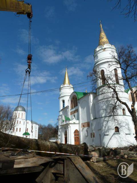 Заважають безпеці, пам’яткам, церковникам і… фотографам. Минулої п’ятниці зрання пролунав тривожний дзвоник. Біля самісінького Спасо-Преображенського Собору пиляють дерева.Вже за півгодини журналіст із своєю «зброєю» був на місці. Виконавець робіт виявився не особливо балакучим і навіть висловлював протест проти проведення зйомок. Щоправда, після ретельного вивчення журналістських посвідчень заспокоївся.