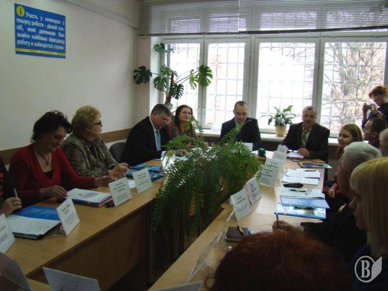 За столом зібралися представники органів виконавчої влади, обласного та міського центрів зайнятості, підприємств, установ, а також місцевих засобів масової інформації.