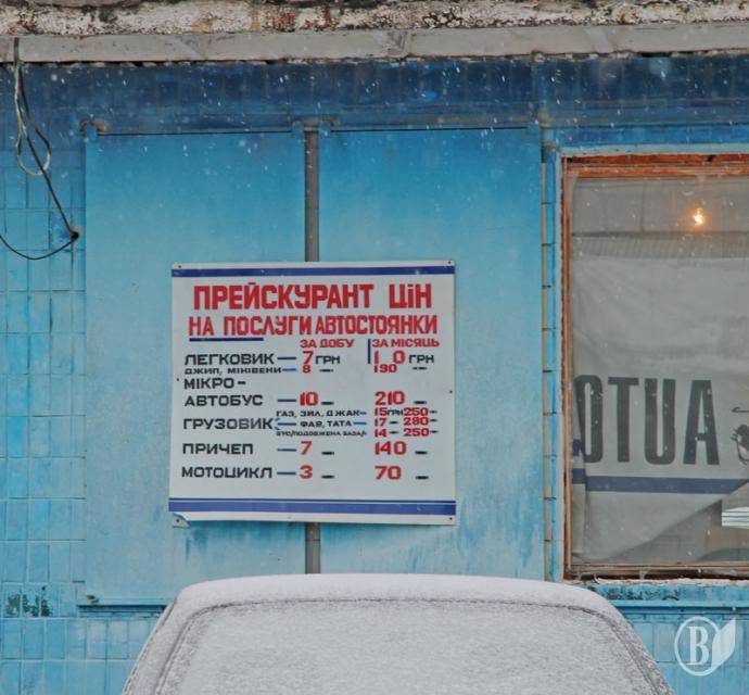 Третя стоянка - змішана - 40 авто та вантажівок під стоянку. А ще з 20 – стоять машини на продаж. Це на вулиці Щорса, 53 – поруч із рекламним комбінатом та аптечними складами. Водії, які ставлять свої машини на стоянці, про умови оплати нових авто під маркою « ПРОДАЁТСЯ» не знають.