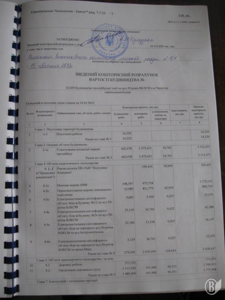 Ознайомлення з проектною документацією дозволило зрозуміти яким чином була сформована вартість проекту будівництва тролейбусної лінії.