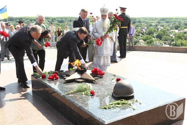 "У сквері ім. М. М. Попудренка до Братської могили двадцяти чотирьох радянських воїнів, які загинули восени 1943 року при визволенні Чернігова та форсуванні Дніпра поклали квіти голова обласної державної адміністрації Володимир Хоменко, голова обласної ради Анатолій Мельник, Чернігівський міський голова Олександр Соколов, народний депутат України Владислав Атрошенко, учасник бойових дій у Великій Вітчизняній війні, член Президії Ради Чернігівської обласної організації ветеранів України генерал-майор Євген Зєлєнов, ветерани війни та праці, депутати місцевих рад, представники установ та організацій, громадських об’єднань", - повідомляє Прес-служба облдержадміністрації.