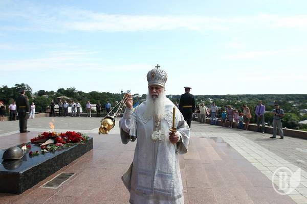 Після покладання квітів до Вічного вогню заупокійну літію за загиблими відправив керуючий Чернігівською єпархією Української Православної Церкви Архієпископ Чернігівський і Новгород-Сіверський Амвросій.