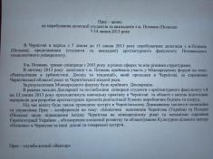 Делегація з м. Познань (Польща), представники (студенти та викладачі) архітектурного факультету Познанського технологічного університету перебуватимуть у Чернігові в період з 7 липня до 13 липня 2013 року.