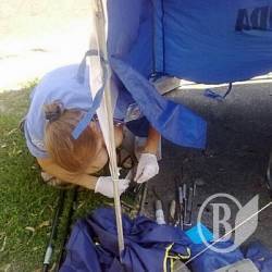 Нападение на палатку случилось вблизи остановки «Пожтехника», что на улице Белова. В палатке находились двое черниговцев-сторонников партии – женщина и мужчина преклонных лет. Юнцы прибежали к ним с криками: «Вы не из нашева района!» и сняли флаг «Свободы», размещенный над палаткой. Когда агитаторы попробовали забрать у нападающих стяг – те бросили в них стеклянной бутылкой с пивом. Также был поломан каркас палатки. Стоит заметить, что рядом со свободовской палаткой стояли палатки других кандидатов, однако их никто не трогал.