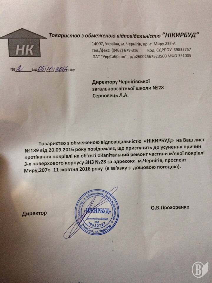 10.10.2016 Освіта протікає: у Чернігові потекли дахи у школі та дитсадку