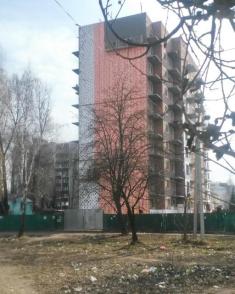 Прогуливаясь мимо стройки, которая ведется возле второго КПП (это за леткой где разворачиваются маршрутки дом из красного кирпича, что пристроен к панельным домам кторые делал наш ДСК), я был удивлен, что уже начали выполняться фасадные работы, причем такими методами.
