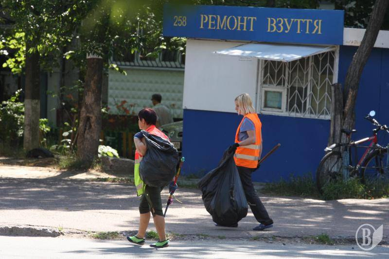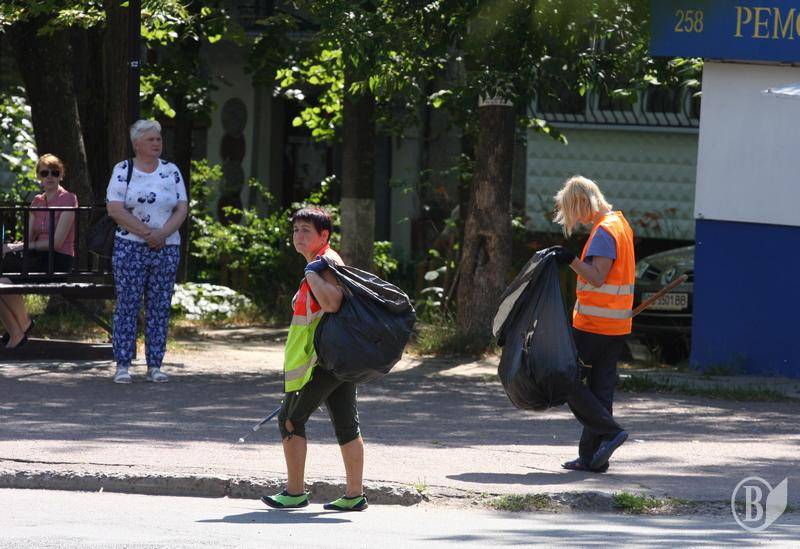Вийшла з маршрутки №11 біля магазину «Союз», що на вулиці Доценка. Помітила, як через дорогу жінки в яскравих жилетах збирали кимось розкинуте сміття – обгортки, якісь папірці. Цих «кимось» було багато, бо з іншого боку вулиці працювали і чоловіки. Теж прибирали.