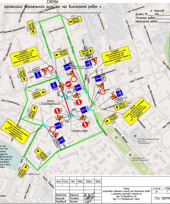 На цих ділянках дороги КЕП «Чернігівська ТЕЦ» ТОВ фірми «ТехНова» за дозволом виконавчого комітету Чернігівської міської ради проводитиме капітальний ремонт ділянки магістральних теплових мереж діаметром 530 мм та довжиною близько 200 м.п. по вул 1-ї Гвардійської армії (від вул. В. Чорновола до готелю «Градецький») з заміною існуючих трубопроводів на попередньо ізольовані.