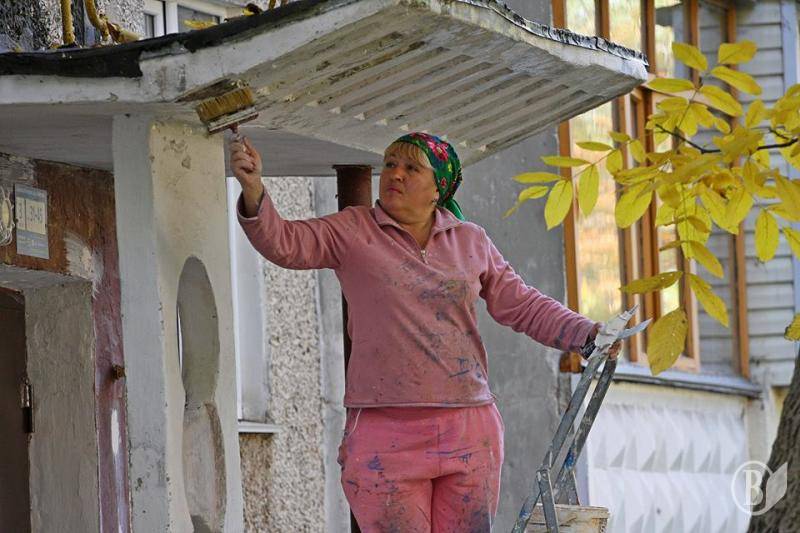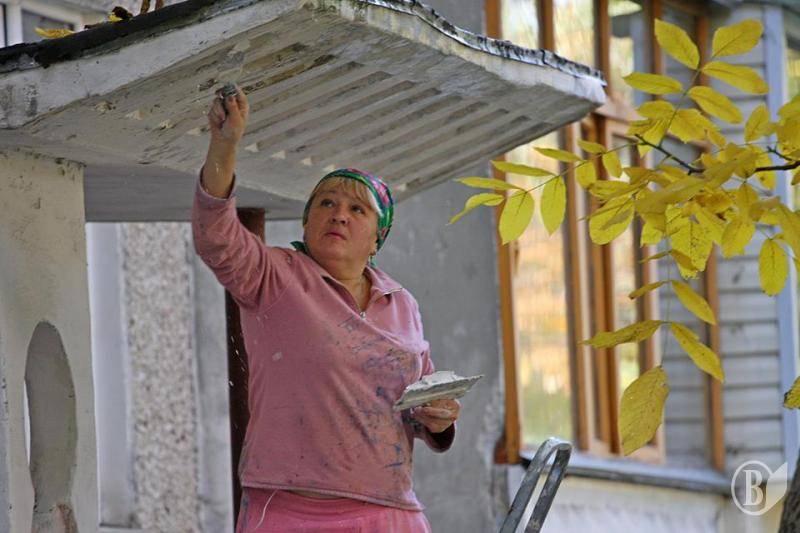 Так пані Тамара й пані Олена ремонтують козирки під’їздів у будинку 17-Г, по вулиці Доценка, на території ЖЕКа-10 .