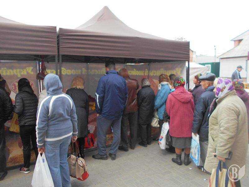 Люди в них стоять за товарами (продуктами), які виготовлені фермерами власними руками. За продуктами , які радують чернігівців та туристів своєю якістю, смаком та ціною.