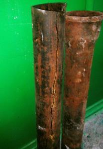 Ще вчора ввечері мешканець 9-го поверху переконував працівників компанії, що в нього проблем з каналізаційною мережею не існує, а значить і міняти її непотрібно. Але на вимогу управляючої компанії ремонтників все ж таки допустили до мереж. Те, що побачили після розкриття каналізаційного колодязя – шокувало. Чавунна труба була тріснута в кількох місцях. Витоки з труби потрапляли на зовнішню стіну будинку і руйнували її. Вода, потрапляючи на стіну, вимивала розчин поміж цеглою. І досі наслідки витоків з каналізаційної мережі будинку можна побачити на зовнішній стіні будинку…