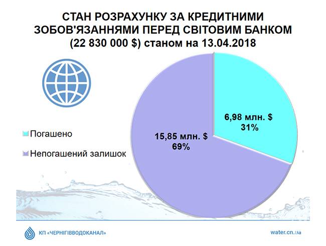 У п’ятницю, 13 квітня, «Чернігівводоканал» самостійно і повністю розрахувався за поточними кредитними зобов’язаннями перед Світовим банком.