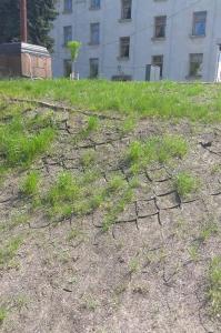 Чернігівці дивуються «гумовому скелету» газонів у сквері Хмельницького