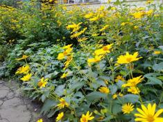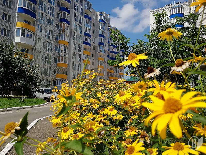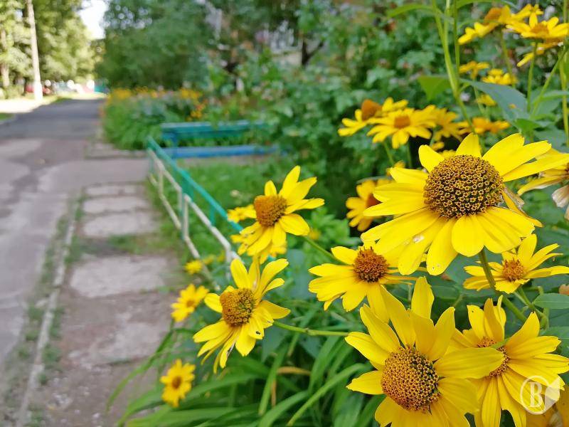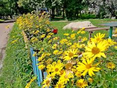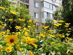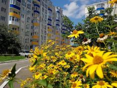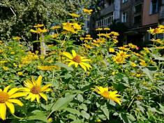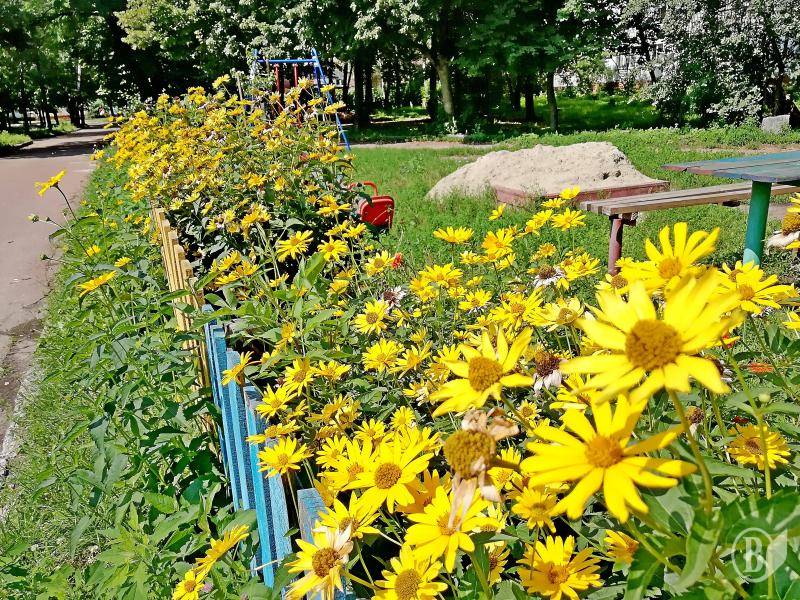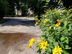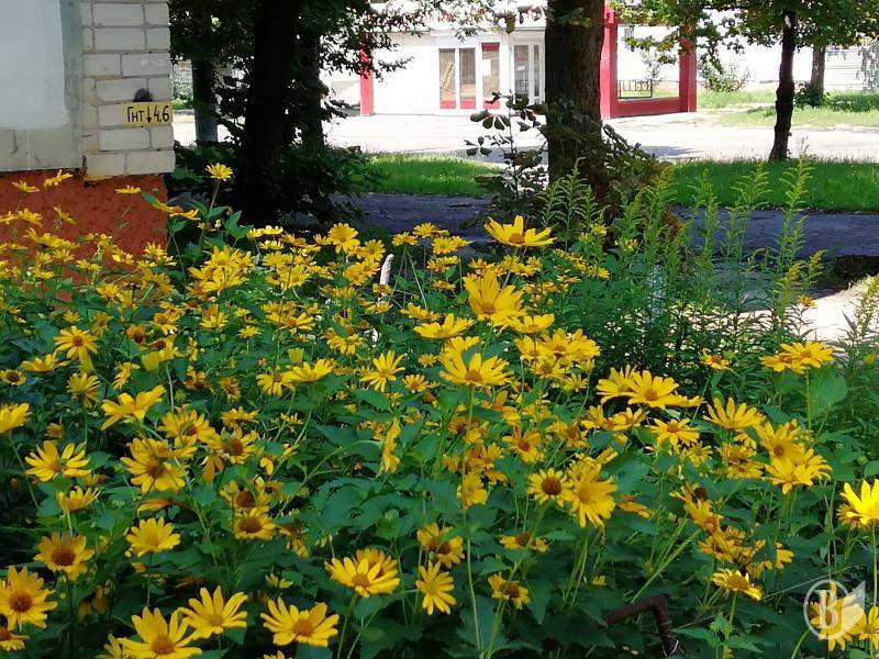 Жовті квіти прикрашають двори будинків на вулицях Бєлова, Пухова, Космонавтів, Доценка. Перегукуються кольорами з новобудовами - багатоповерхівками на вулиці 1 Травня.