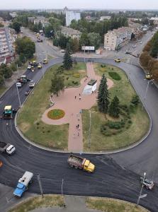 На місці працюють дорожники, зняли старий асфальт і вкладають новий.